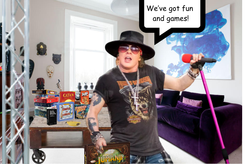 Proudly wielding a microphone stand and worn copy of the boardgame Jumanji, 61-year-old Guns N’ Roses front man Axl Rose led guests of last Friday night get-together into his rumpus room—insisting they call it he “The Jungle”—before soulfully, if puzzlingly, informing partygoers, “We’ve got fun and games!” Rose, who lives alone with no butler, confused long-time friends—among them in attendance GNR lead guitarist Slash, glam rock band Poison lead singer Bret Michaels, and Mötley Crüe drummer Tommy Lee—with the utterance, Lee even suggesting early onset dementia as Rose, unresponsive to his guests’ pleas chanted, “Sha-n-n-n-n-n-n-n-n knees, knees / Mwah, I, I wanna watch you bleed!”, before, unprovoked, striking long-time Guns N’ Roses record producer Mike Clink and proceeding to scale a lighting stand bewilderingly in the corner of the room.